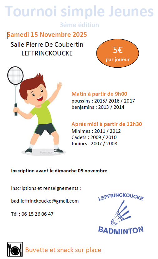 Le club de badminton de LEFFRINCKOUCKE son tournoi jeune