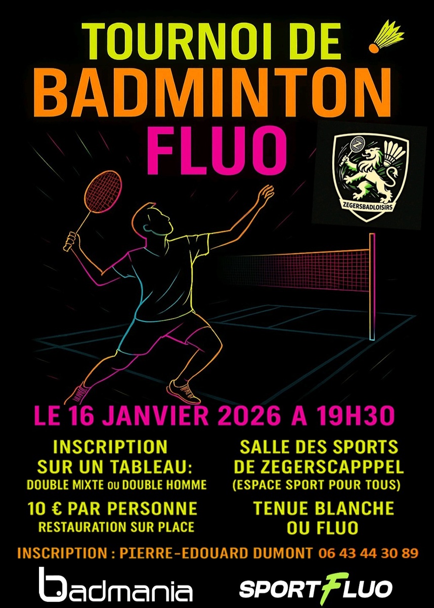 je vous transmet le mail recu par le club de Zegerscappel, si vous désirez participer à ce tournoi fluo, n'hésitez pas à vous inscrire directement au numéro indiqué sur l'affiche et me prévenir ensuite